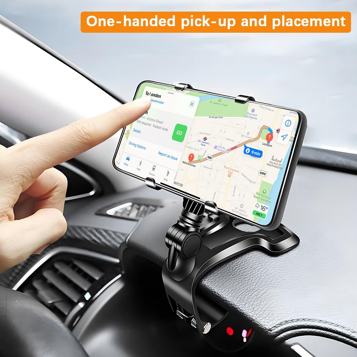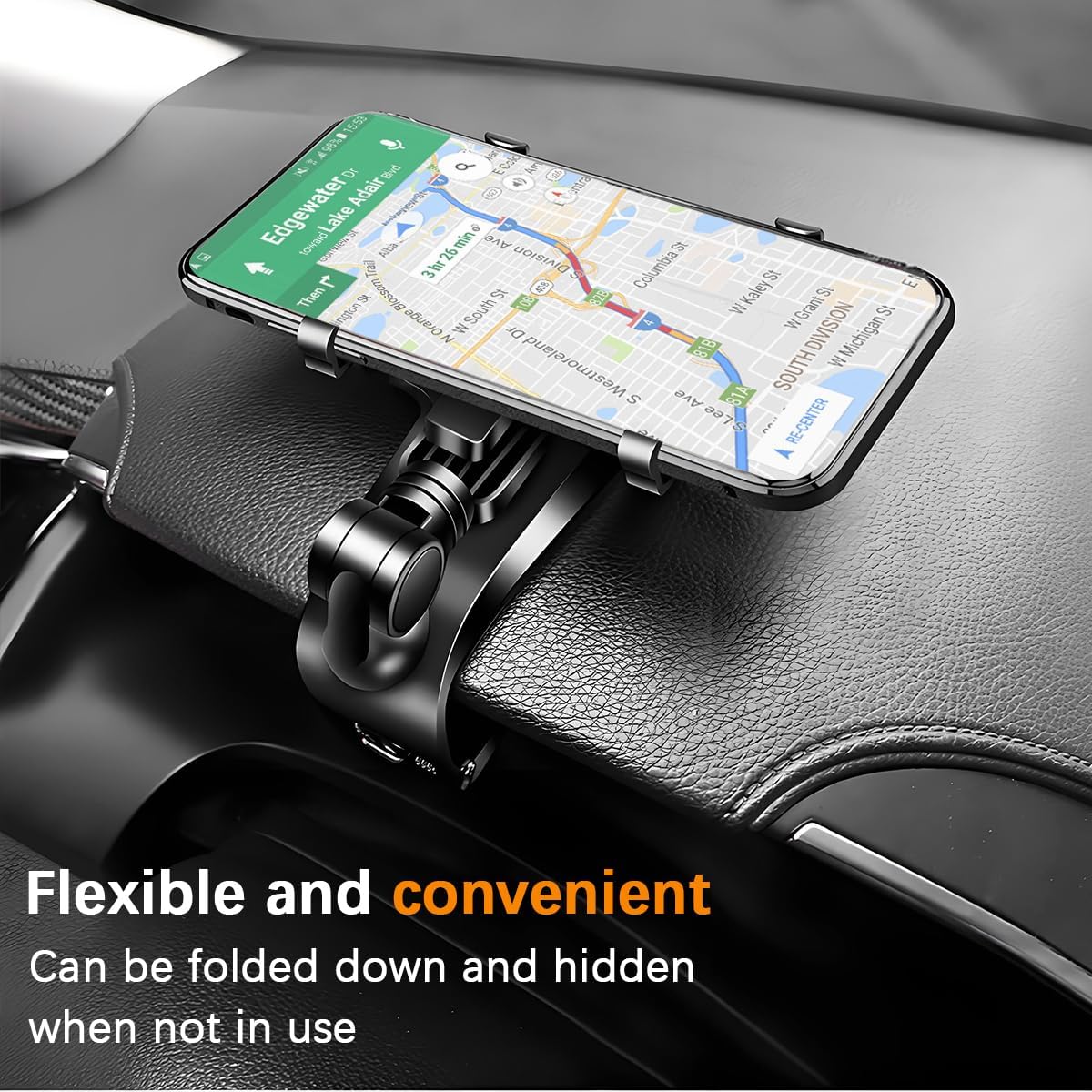 Flexible Access: The product features a 1400° omnidirectional rotation function, accommodating any angle requirement and suitable for adjusting the viewing angle in various in-car usage scenarios. It supports one-handed operation to press the clamp arm and retrieve the phone, making it easy and simple to use. There is no need to exert effort to adjust it, allowing for quick phone retrieval and placement, reducing operational steps, and enhancing smoothness during use.