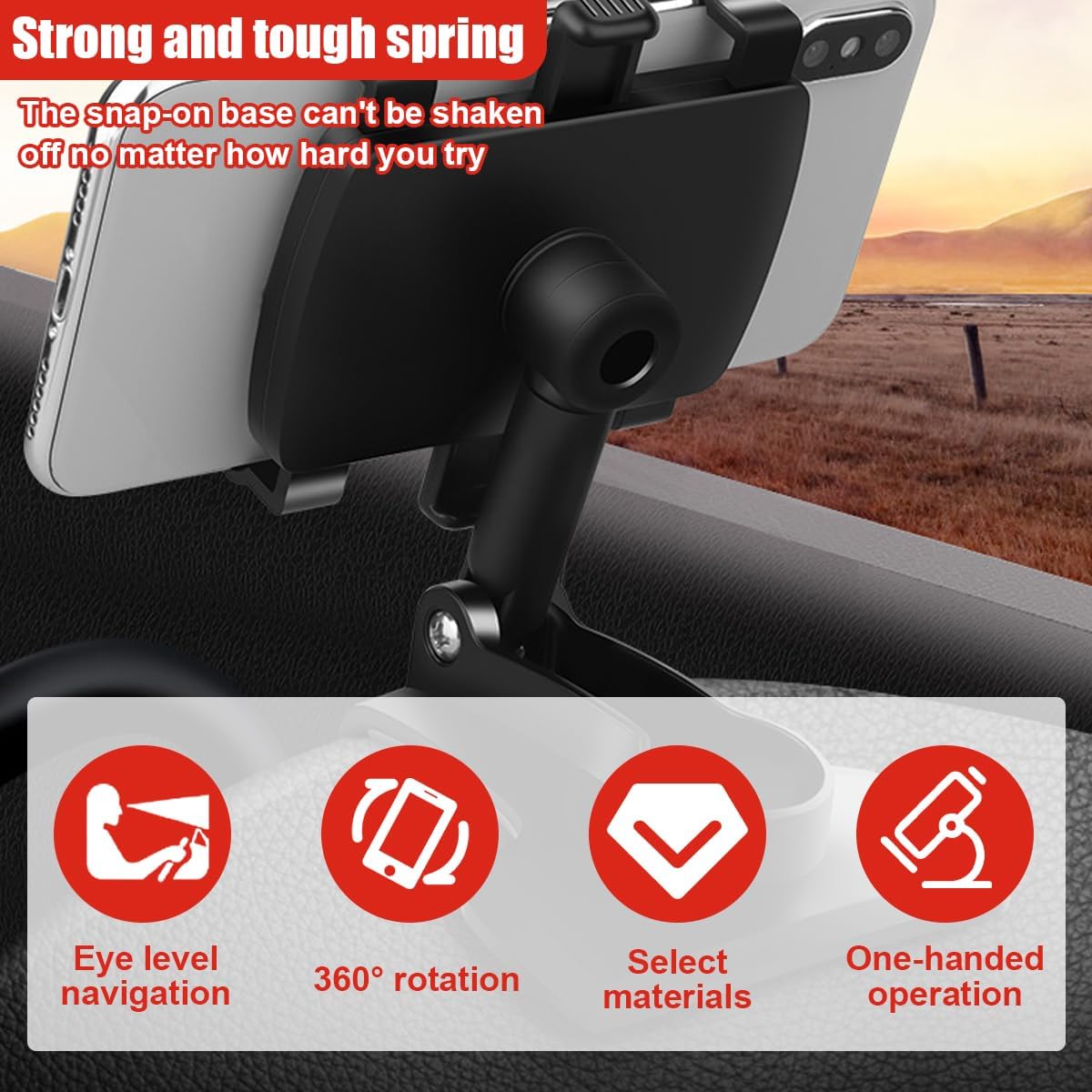 【Easy Installation】: This dashboard clip-on holder is designed with a sturdy spring and snap base, easy to install, just hold it open and clip it directly on the dashboard to fix it, supports multi-position and multi-angle flexible use. It is also easy to disassemble, does not take up space, easy to store with the car and access at any time.