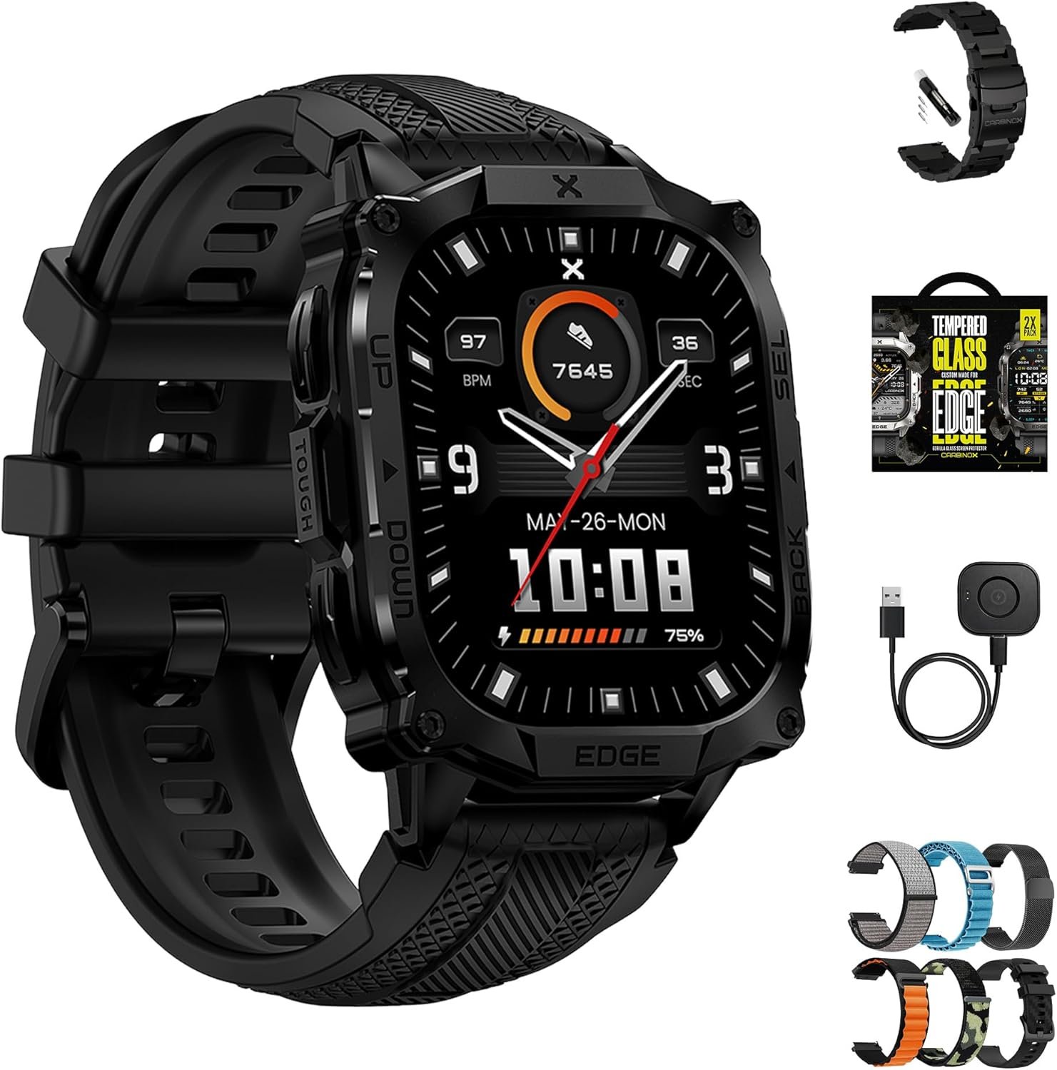 CARBINOX Edge Smart Watch Ultimate Pack 1.96″ AMOLED, Stainless Steel, IP69K/5ATM Fitness