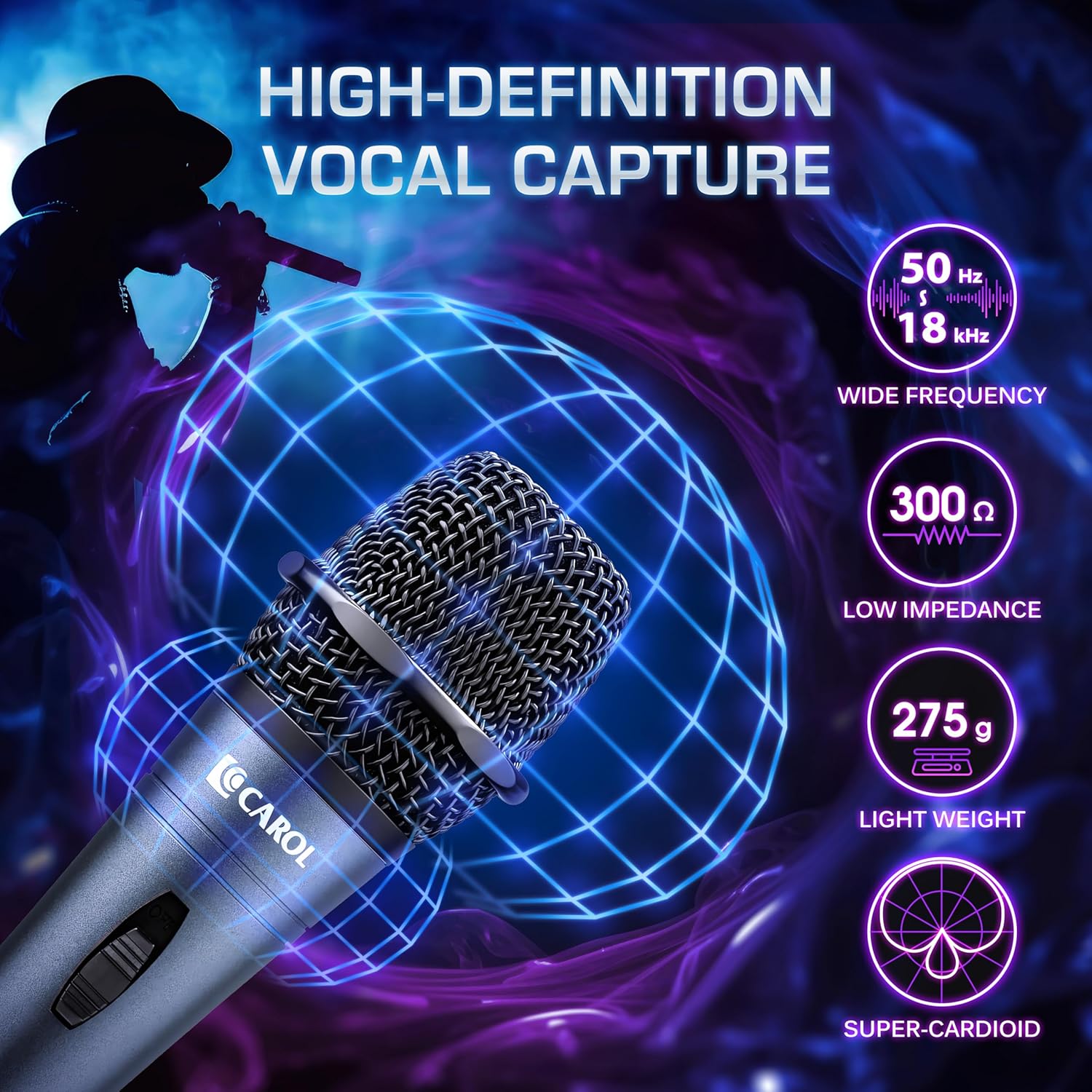 Noise-Free Switching: CAROL’s patented Slide Potentiometer Switch delivers smooth, professional-grade sound. Its variable resistance design helps eliminate static and feedback while extending mic life