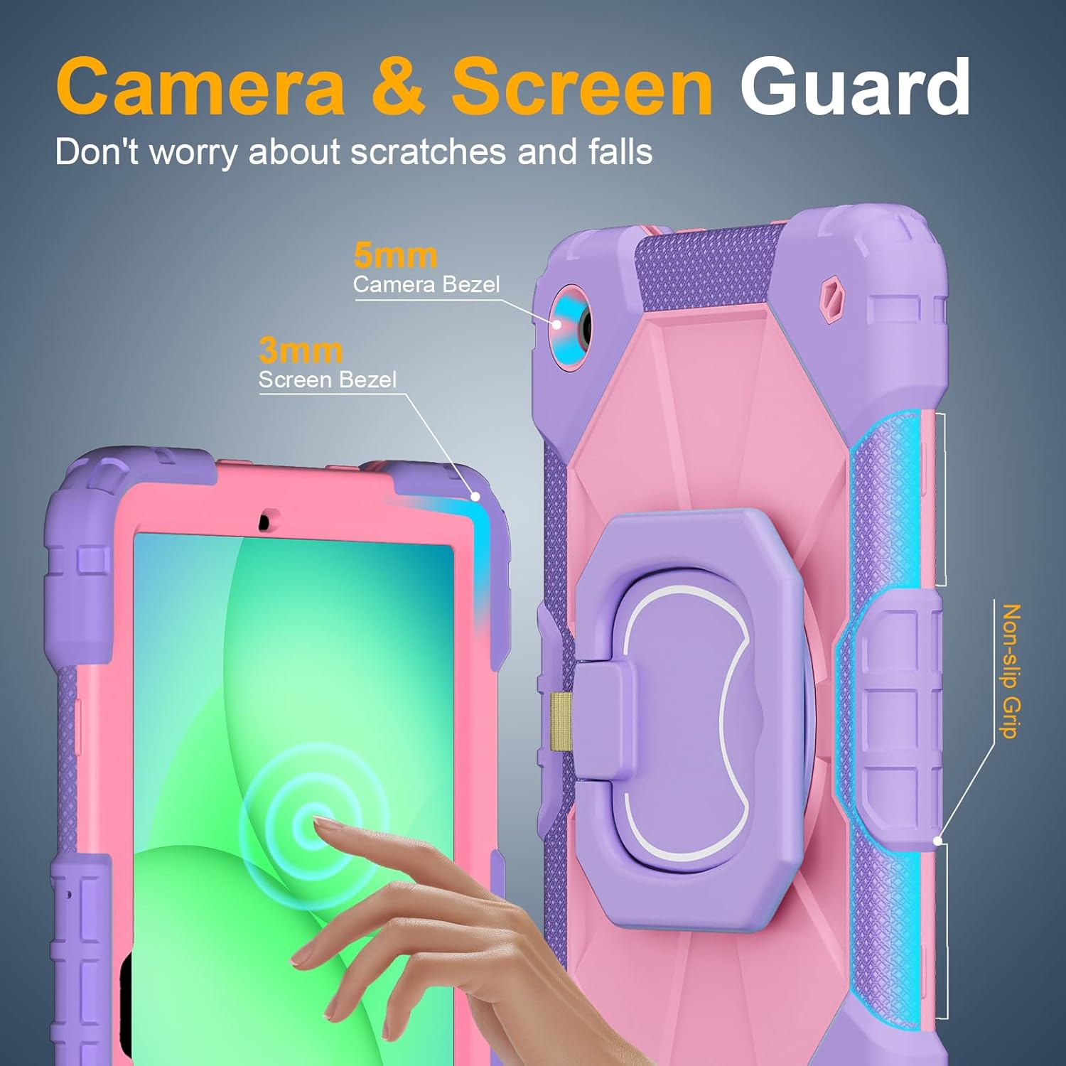 Case for Samsung Galaxy Tab A11+ Plus/A9+ 11 Inch 2025/2023,Ubearkk Case for Samsung Galaxy A9 Plus/A11+ Tablet case with Screen Protector 360 Rotating Stand Shoulder Strap Pen Holder, Purple Pink