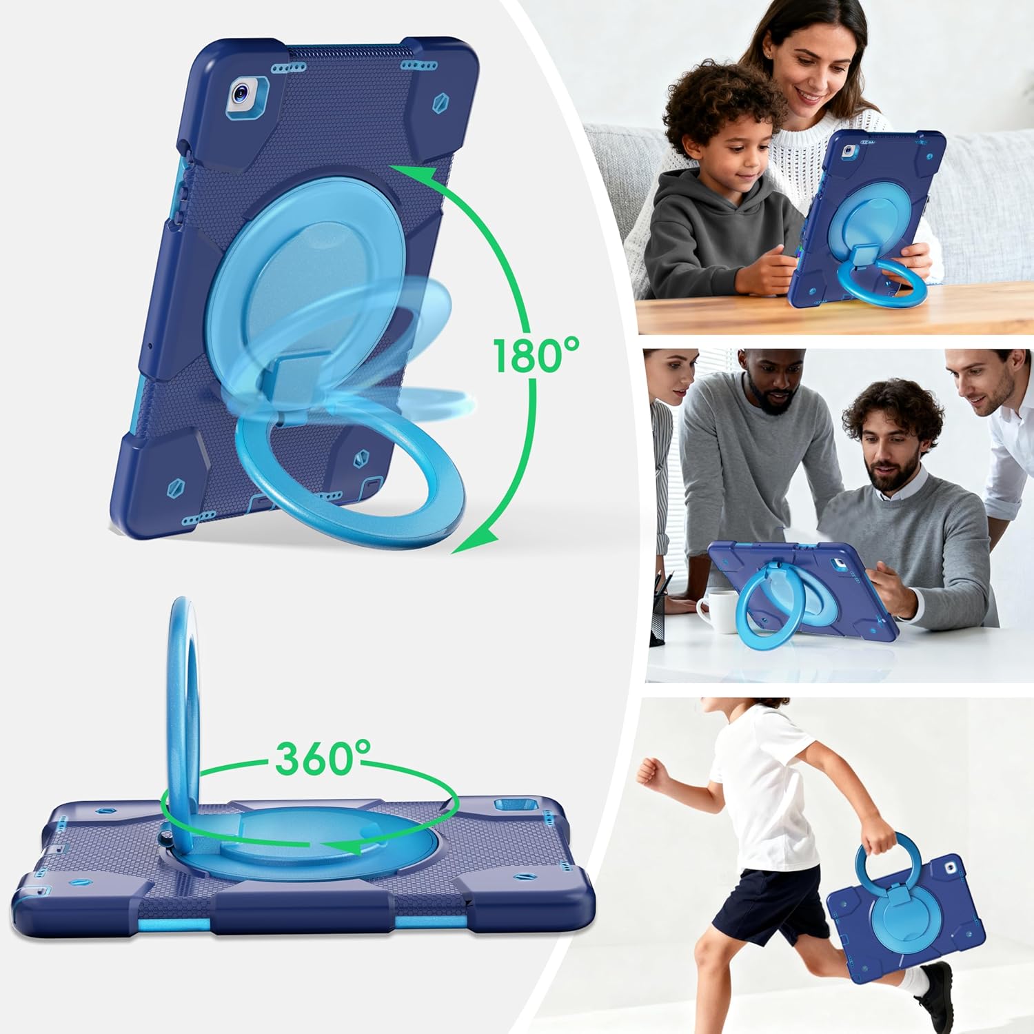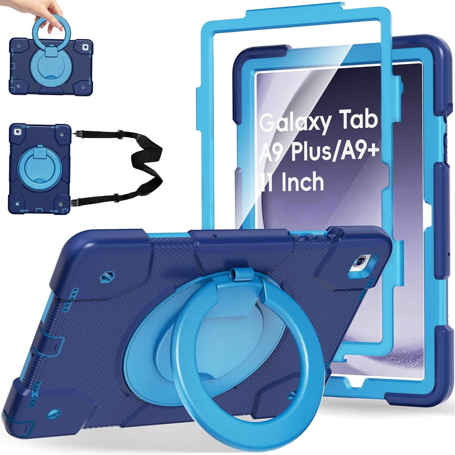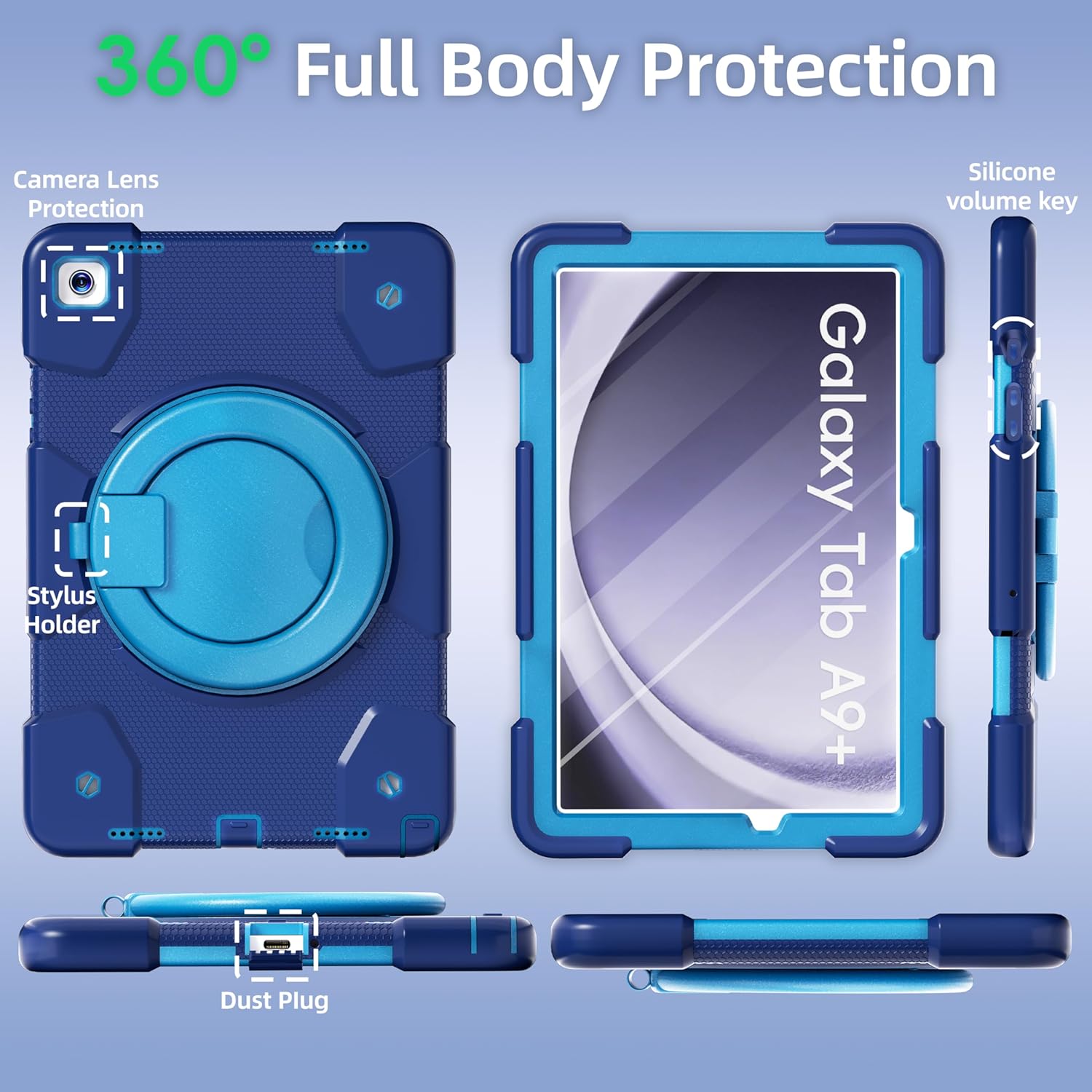 Case for Samsung Galaxy Tab A9+/A9 Plus Case 11 Inch with Screen Protector/360° Rotating Stand/Pen Holder/Shoulder Strap, Shockproof Cover for Tablet A9+ 5g (SM-X210/X216/X218) (Navy+Blue)