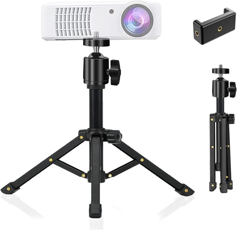 Mini Projector Stand, All Metal Mini Tripod Desktop Tabletop Stand Compact Desk Tripod for Mini Projector, Logitech Webcam, iPhone, Camera, Smooth 4, Osmo Mobile, Vimble 2