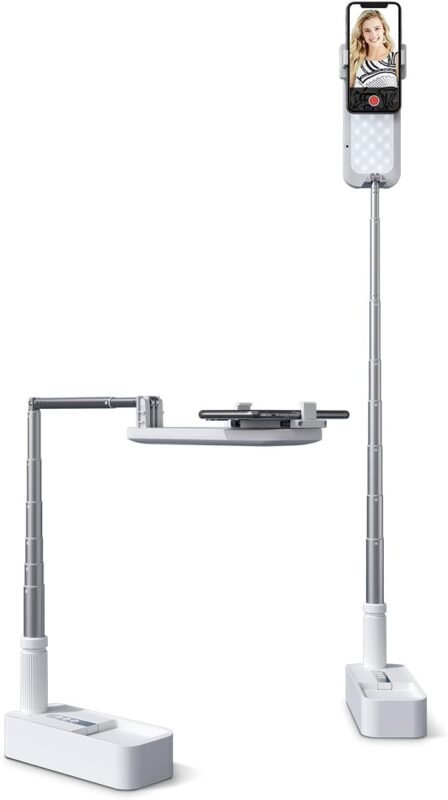 yAyusi 68.5″ Overhead Phone Mount with Ring Light for iPhone, 3000mAh 360° Rotation Foldable Rechargeable Ring Light Phone Holder for Video Recording, Live Streaming, Artistic Creation, TikTok,YouTube