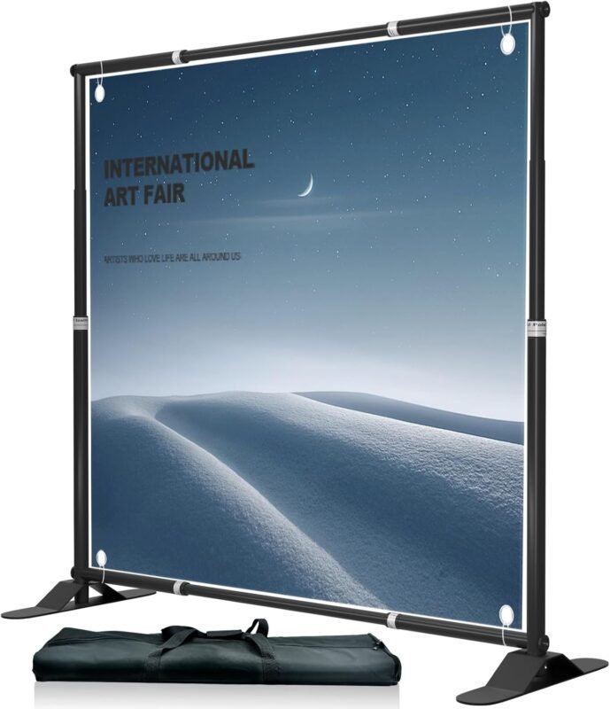 Banner Stand Backdrop, 10 x 10 Ft Heavy Duty Back Drop Adjustable Step and Repeat Background Frame for Parties Photography Photo Booth Wedding Trade Show Exhibition with Carrying Case
