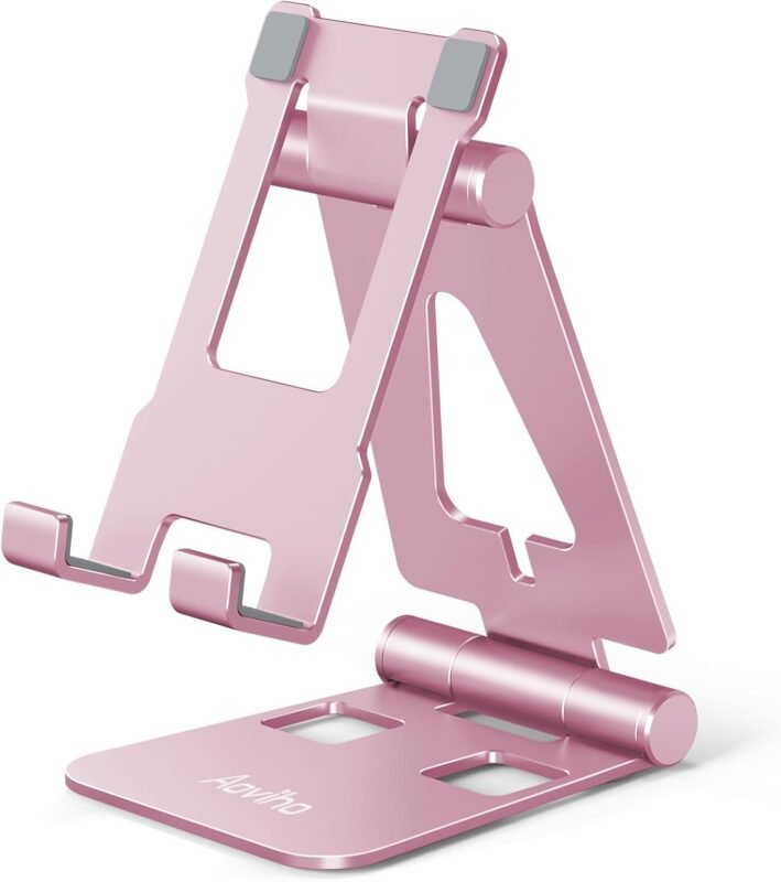 Cell Phone Stand for Desk, Adjustable Desktop Phone Holder Stand, Foldable Moblie Phone Dock for iPhone17 16 15 14 13 12 11 Pro Xs Max Xr X 8 7 6 5 5s SE Nintendo Switch All Phones, Pink