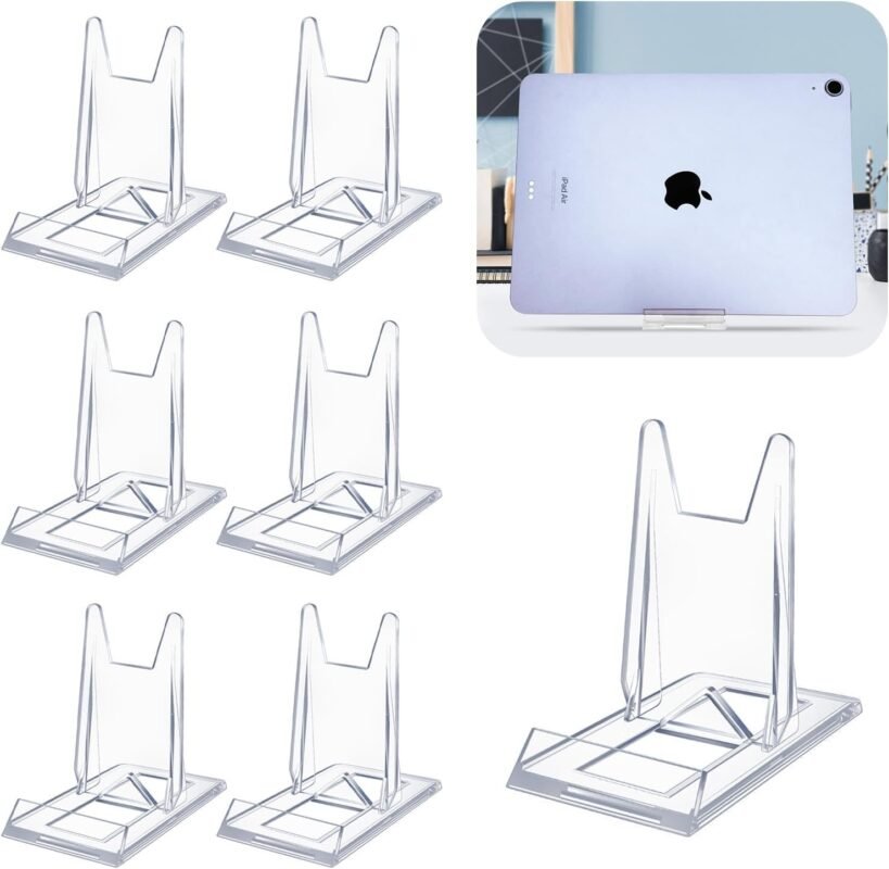 6 Pack Clear Acrylic Adjustable Desktop Book Stand & Display Easel for Tablet Phone Clutch Bag Plate Artwork Magazine Picture Comic Album CD Postcard – Home Office Back to School