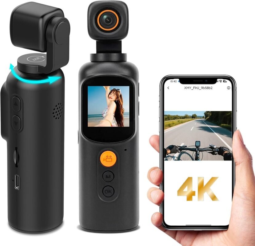 4K Body Cameras with Audio and Video Recording, WiFi Portable Vlogging Camera 350° Rotation, 64GB Card Included,6HR Battery, Mini Action Camera for Travel, Work Records, Covert Recording.