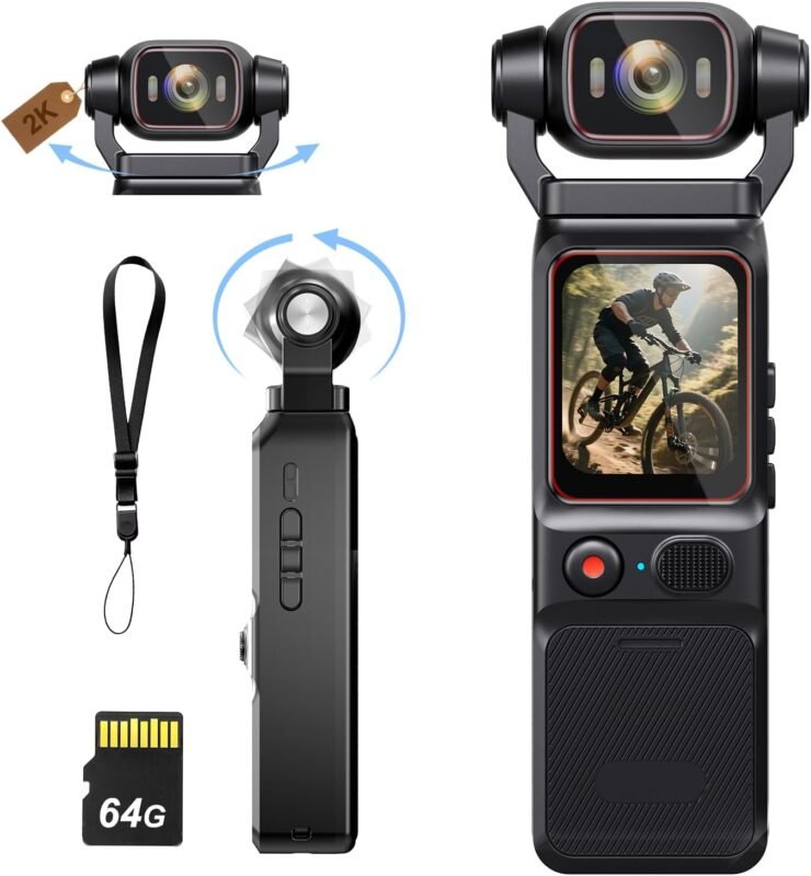 2K Body Camera 【2026 Version】 Vlogging Camera 64G Portable Handheld Body Cam with 360° Rotating Lens, EIS Stabilization for Meeting, Cycling, Adventure Sports, and Dailly Use