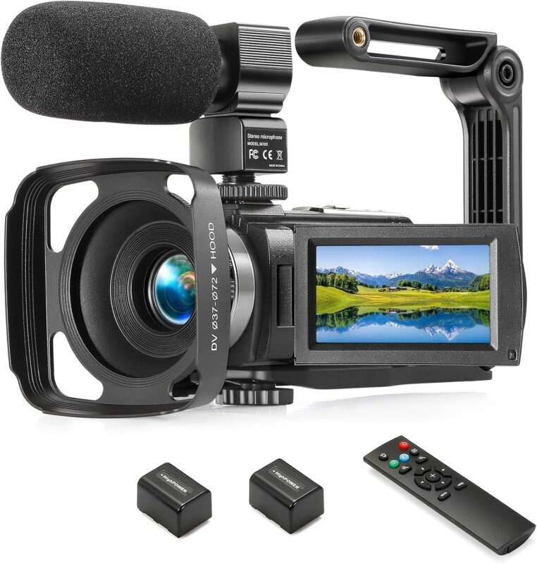 Camcorder FHD 1080P Video Camera for YouTube with 30FPS 36MP 3.0 Inch 270 Degree Rotation LCD, 16X Digital Zoom Vlogging Camera for Beginners with 2 Batteries Microphone, Remote, Stabilizer, Lens Hood
