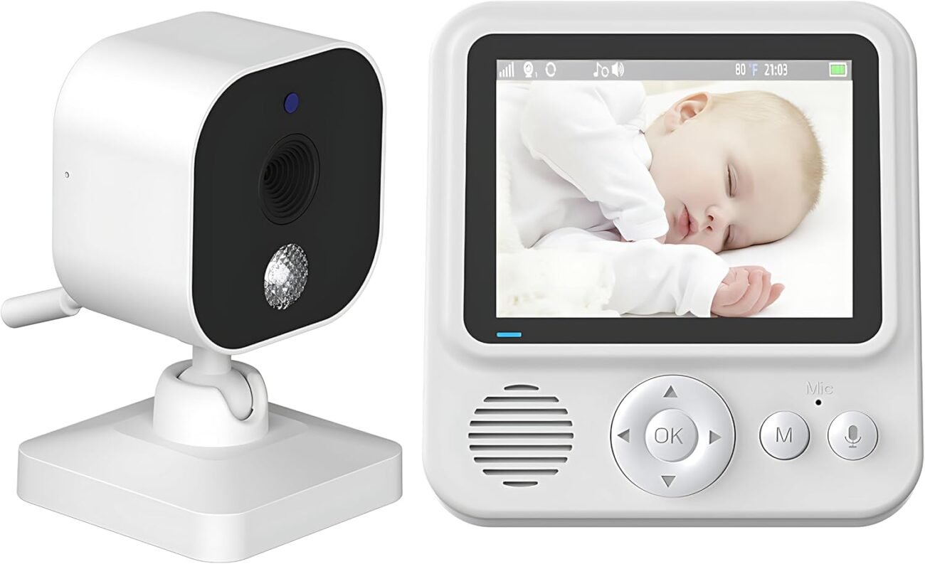 Portable Baby Monitor with 2.8-inch LCD Display, Two-Way Audio, Night Vision, Temperature Sensors, 8 Lullabies, 2.4G Wireless Transmission, 2X Digital Zoom, Feeding Timer Without Power Adapter