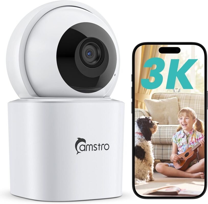 3K Indoor Security Camera 360°PTZ Home Baby/Pet Monitor, Auto Tracking,2.4/5GHz WiFi, AI Motion & Sound Detection,2-Way Audio, Night Vision, SD/Cloud Storage, Works with Alexa, No Monthly Fee