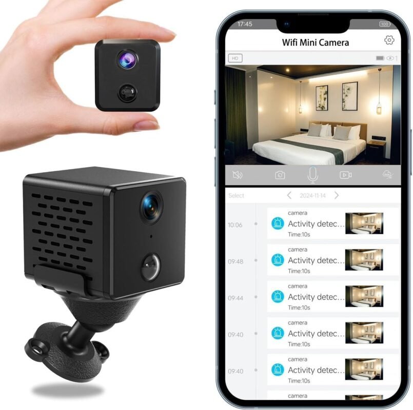Wireless Mini Security Camera FKJ-WiFi, Remoted App Viewing, Long time Standby Battery Camera for Home, 2K Live View, Portable,Indoor with Auto Night Vision & Real-time Motion Alerts