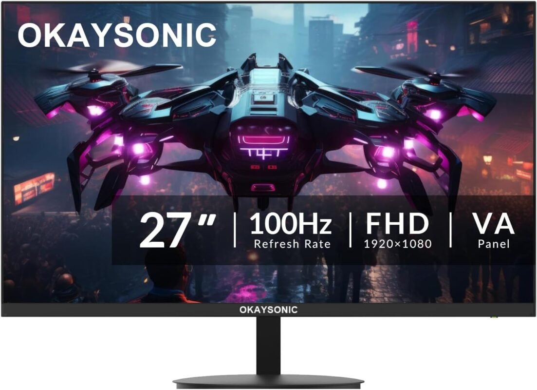 27 Inch Office Monitor, 100Hz FHD 1080P Computer Screen with HDMI VGA, Eye Care, Frameless 3-Side Borderless Design, 100x100mm VESA Mountable