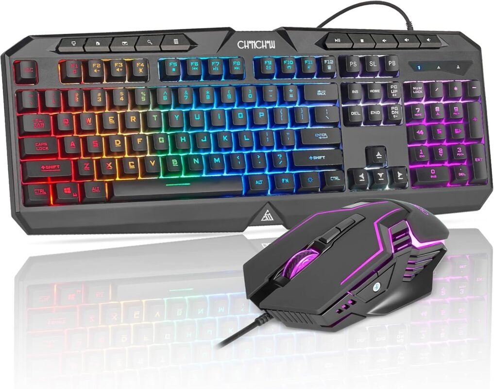 Wired Gaming Keyboard and Mouse Combo with LED Backlit, Quiet, 10 Media Function Keys, 19