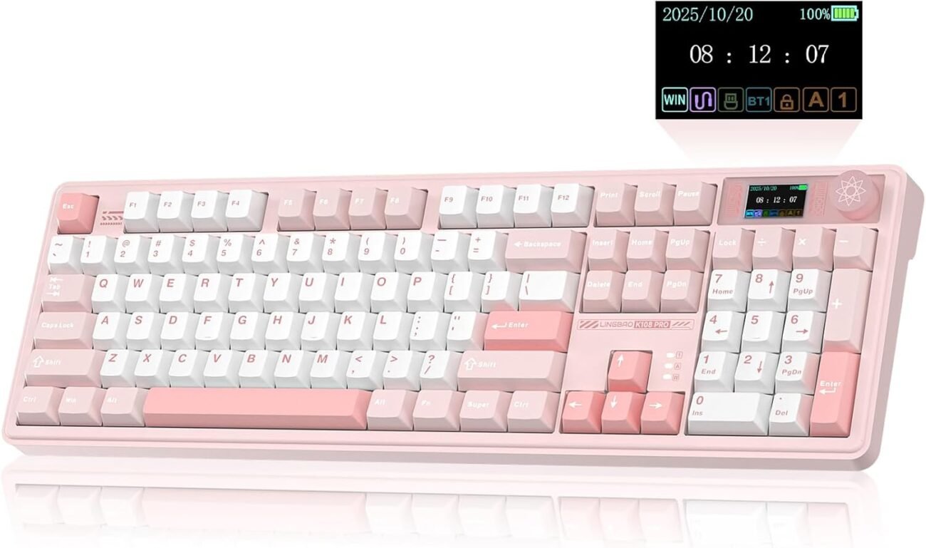 LINGBAO K108 Pro Wireless Mechanical Keyboard with Screen & Knob, Full Size Creamy Keyboard