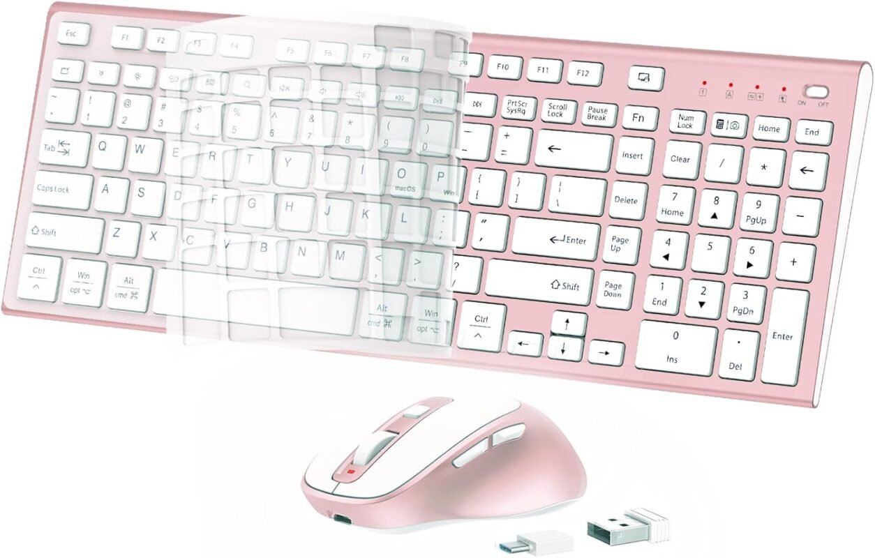 FENIFOX Wireless Keyboard and Mouse, Rechargeable USB C Combo Silent Quiet Compact Full Size
