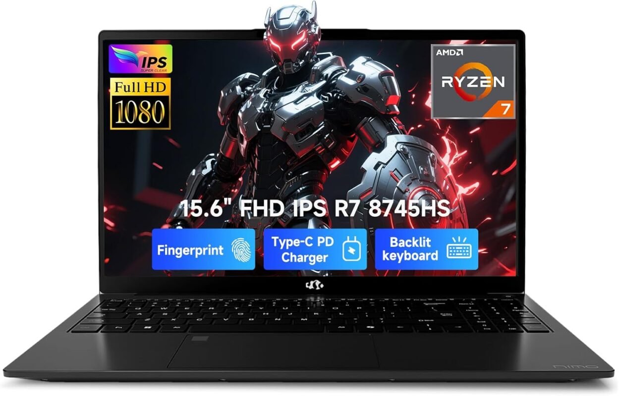 NIMO 15.6″ FHD IPS Laptop, AMD Ryzen 7 8745HS, (4.9GHz, Beat R9 7940HS) 16GB RAM 512GB SSD Rade…