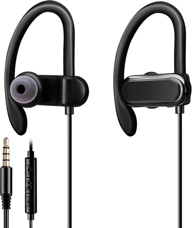 [Upgraded Wired Earbuds Headphones with Secure Ear Hooks & Microphone for Sports Running Gym Wo…