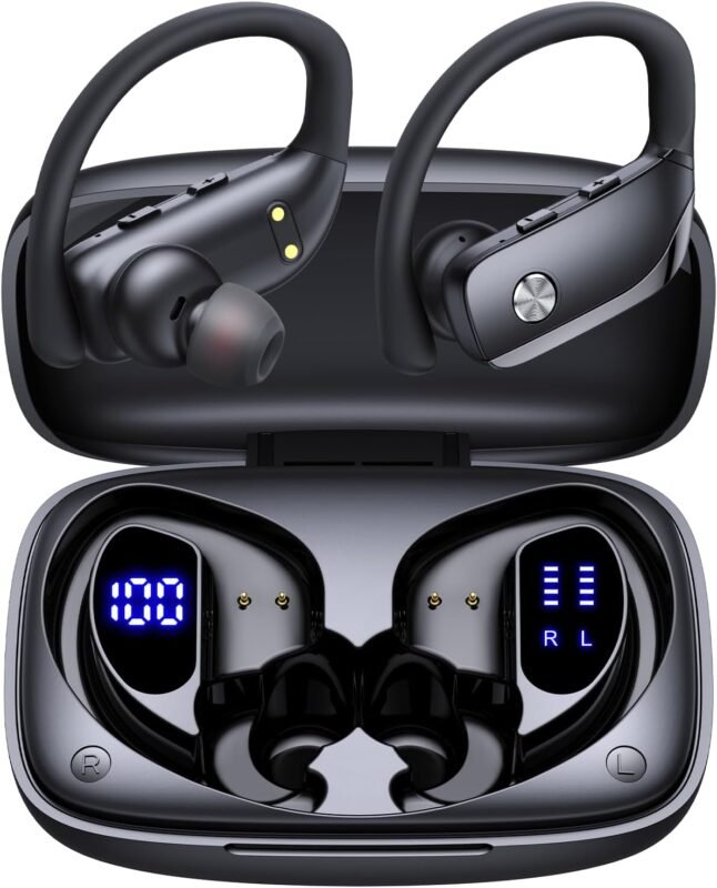 bmanl Wireless Earbuds Bluetooth Headphones Over Ear Hooks Ear Buds with 80H Playtime, LED Powe…