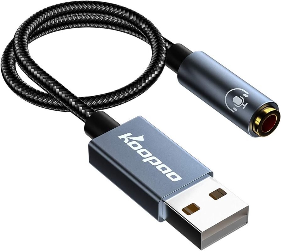 KOOPAO External USB Sound Card, Hi-Res USB Audio Adapter, Plug Play Type A to 3.5mm Aux Converter Compatible for Computer Win10 8 7, Play Station, Gaming Headset, 1M / 3.28ft