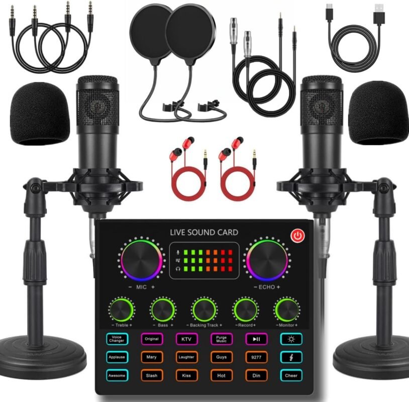 V8max Podcast Equipment Bundle for 2, Voice Changer with BM-800 Podcast Microphone Bundle – Condenser Microphone Perfect for Podcasting, Recording, Singing, Streaming and Gaming