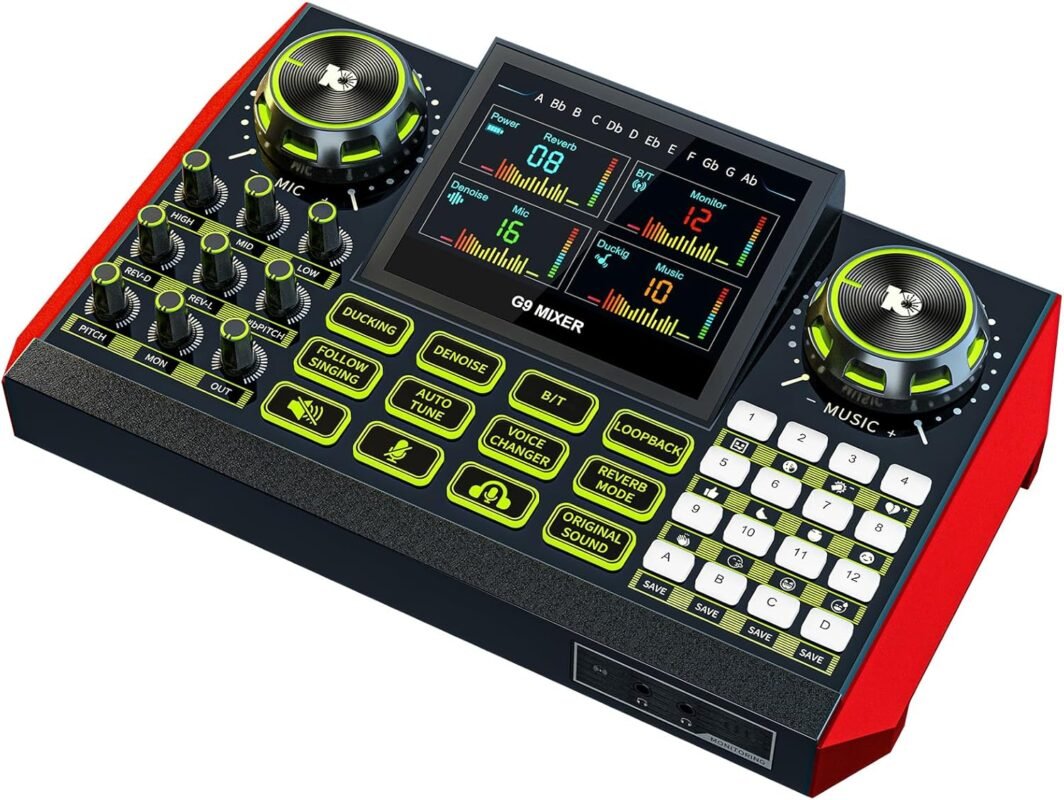 Tenlamp G9 Podcast Equipment Audio Mixer, Live Sound Card Console with 3.5mm Microphone Input, Voice Changer, and Noise Reduction Function