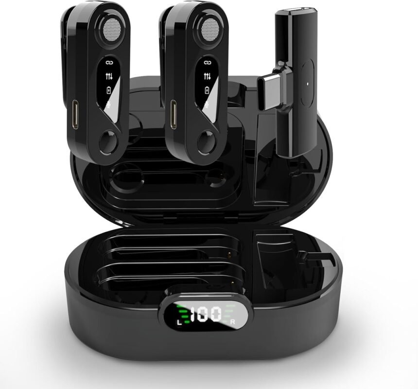 Lavalier Microphone, 2 PCS 48kHz Tiny Wireless Microphones with Charging Case to iPhone Android, 30H Battery Noise Cancelling USB C Wireless Lapel Microphone for TikTok, Vlog, YouTube, Interview