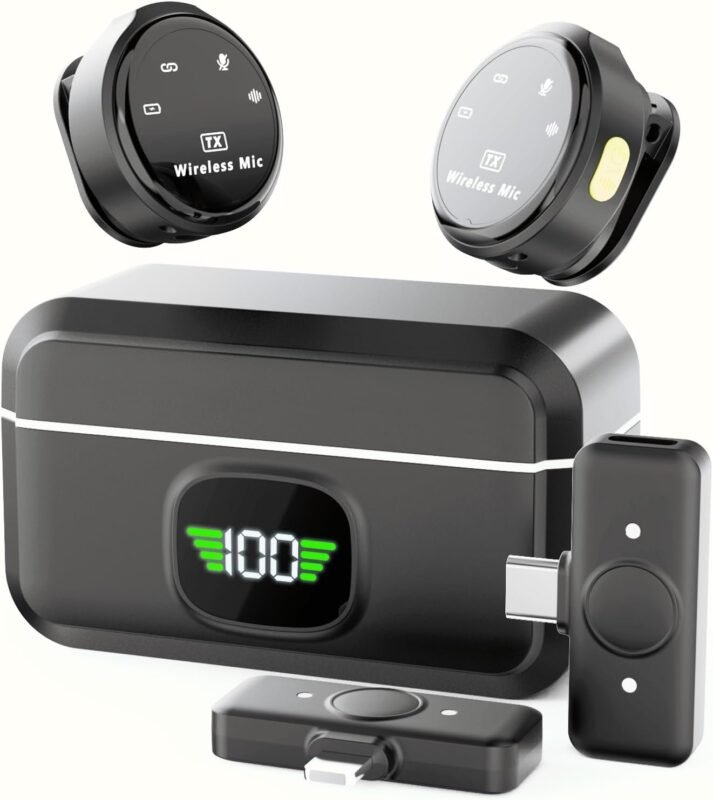 Lavalier Wireless Microphone for iPhone/Camera/PC/Laptop,Lightning/USB-C/Plug,Ultra-Low Latency,360° HD Recording,Intelligent Noise Reduction, Suitable for Video Recording and Streaming