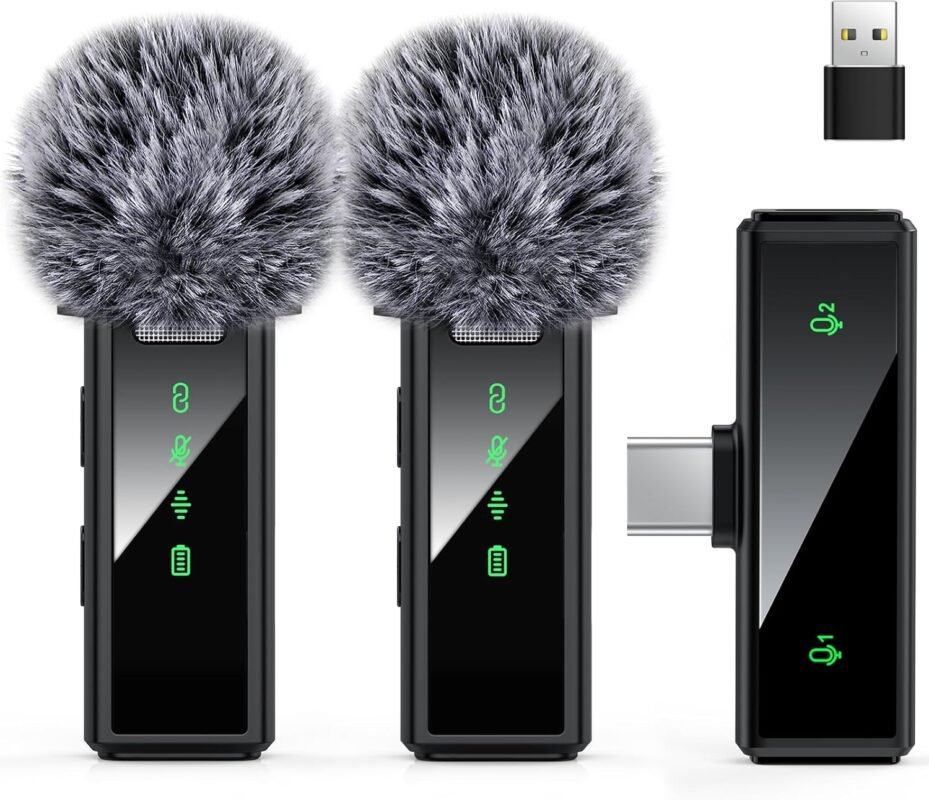 USB C Wireless Lavalier Microphone for Android, PC, Laptop, iPhone 15/16, USB Microphone with Noise Cancellation, Lapel Mic Wireless for Video Recording, Vlog, YouTube, TikTok