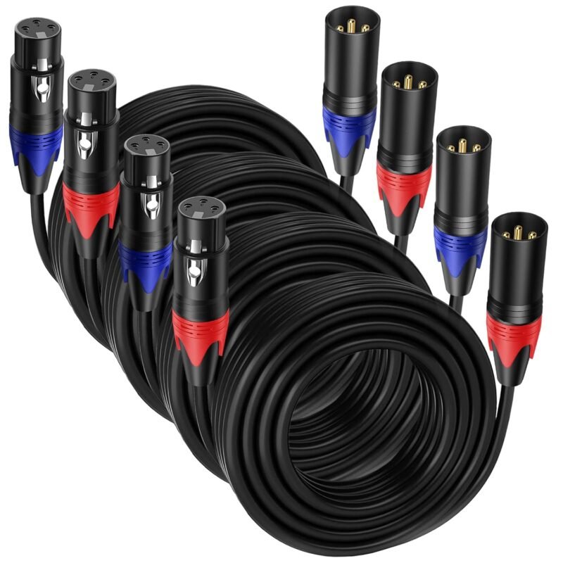 4 Pack, 50 FT XLR Male to Female Cable Professional Balanced Microphone Lead XLR Male to Female Cables, Extension Mic Cable Cord