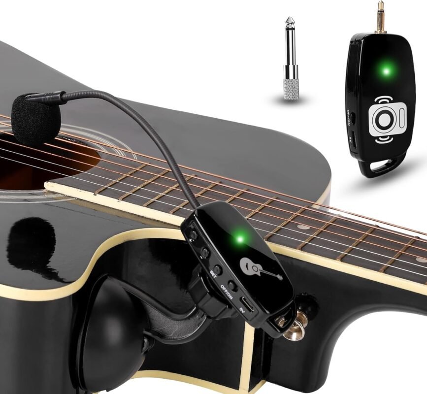 Wireless Instrument Microphone for Acoustic Guitar: 2.4G Cordless Clip-on Mics System with Transmitter and 6.35mm Receiver, for Musicians, Teachers, Stage Performances, PA System,Voice Amplifier