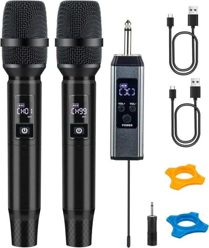 Wireless Microphones, Wireless Bluetooth Karaoke Microphone with Rechargeable Receiver(40H – 500 Ft Range), Karaoke Microphone Set for Singing, Wedding, DJ, Party, Speech, Church