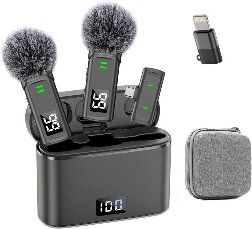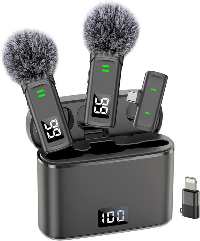 Wireless Lavalier Microphone for iPhone USB C Lav Mic for iPhone 17 16 Android Phone Microphone Video Recording TikTok Vlog Noise Canceling Clip On Microphones with Charging Case 35H Battery Life