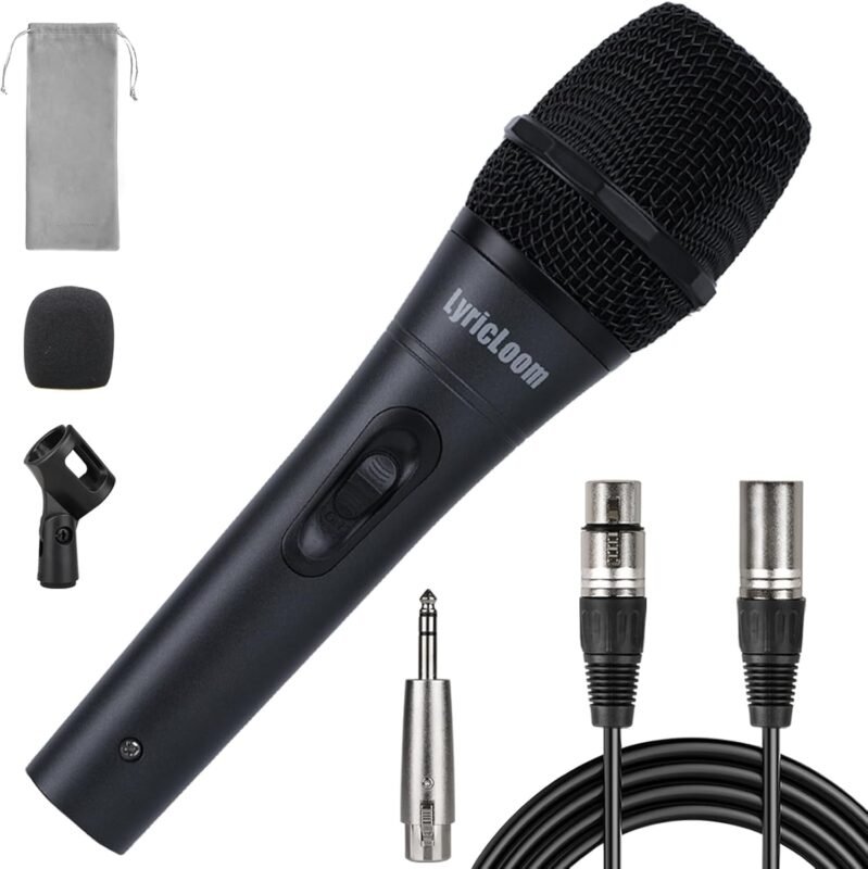 LyricLoom Professional XLR Microphone Wired Set, Metal Vocal Dynamic Microphone with 16.4 XLR Male to XLR Female Cable, Mic with Switch Set. Corded Microphone for Karaoke, Speaker, Singing, Recording