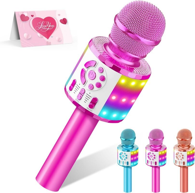 Kids Karaoke Bluetooth Microphone Toys for Girls Microphone Karaoke Machine with LED Light, Birthday Gift for Girls Boys 3 4 5 6 7 8 9 10 11 12 Year Old Kids Toys