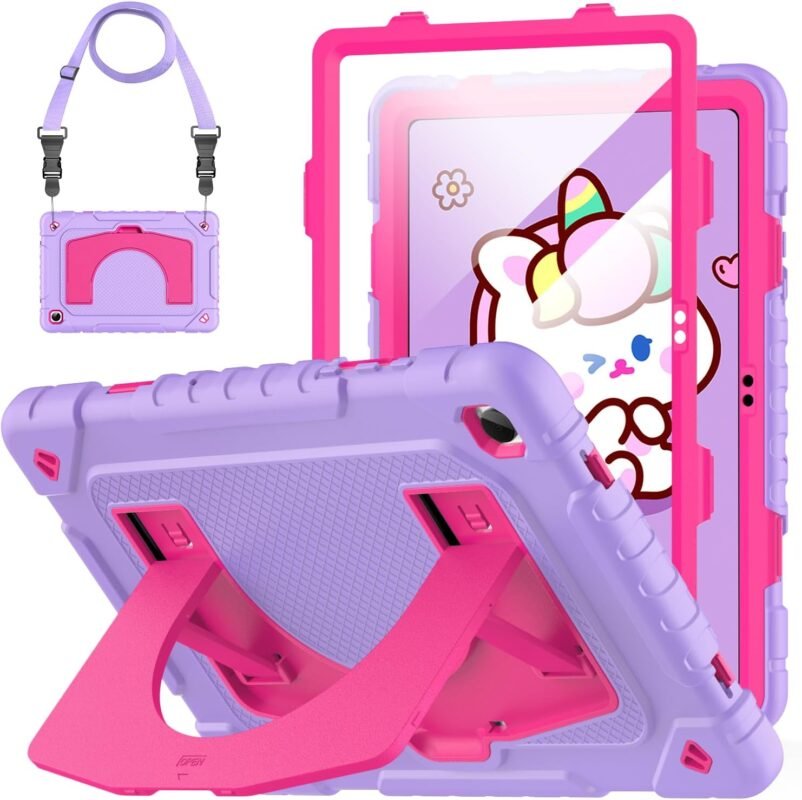 OKP Case for Samsung Galaxy Tab A11+ Plus 2025/ A9+ Plus 11 Inch 2023, Shockproof Rugged 11″ Galaxy A9+/ A11+ Tablet Cover with Built-in Screen Protector, Shoulder Strap, Kickstand, Purple+Hot Pink