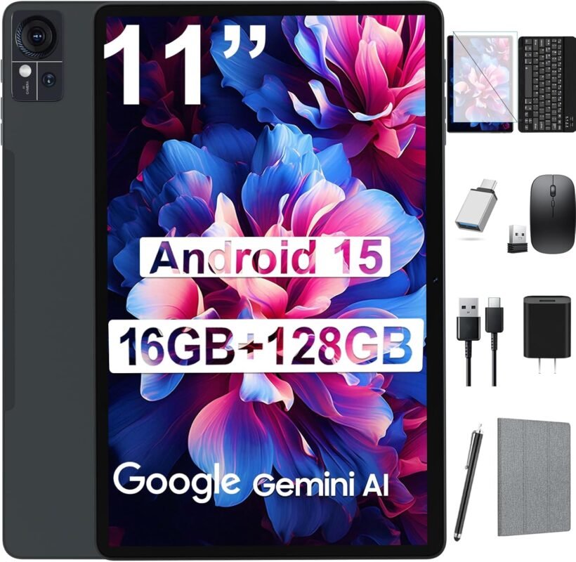 Tablet 11 inch Android 15 Tablet, 16GB RAM,128GB ROM 1TB Expand, 5G WiFi Tablets, Octa-Core, 21MP Camera, 8000mAh Battery, GPS, Tablets with Keyboard, Mouse, Case & Protective Film, 2026 Gemini AI