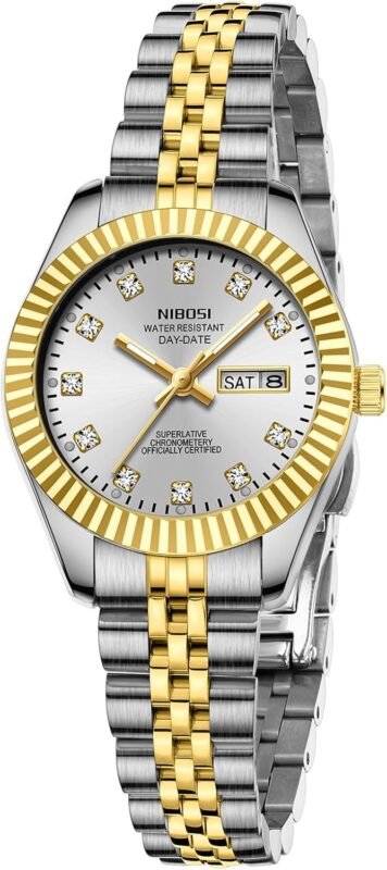 NIBOSI Watches for Women Analog Quartz Stainless Steel Dial with Day Date Luminous Waterproof