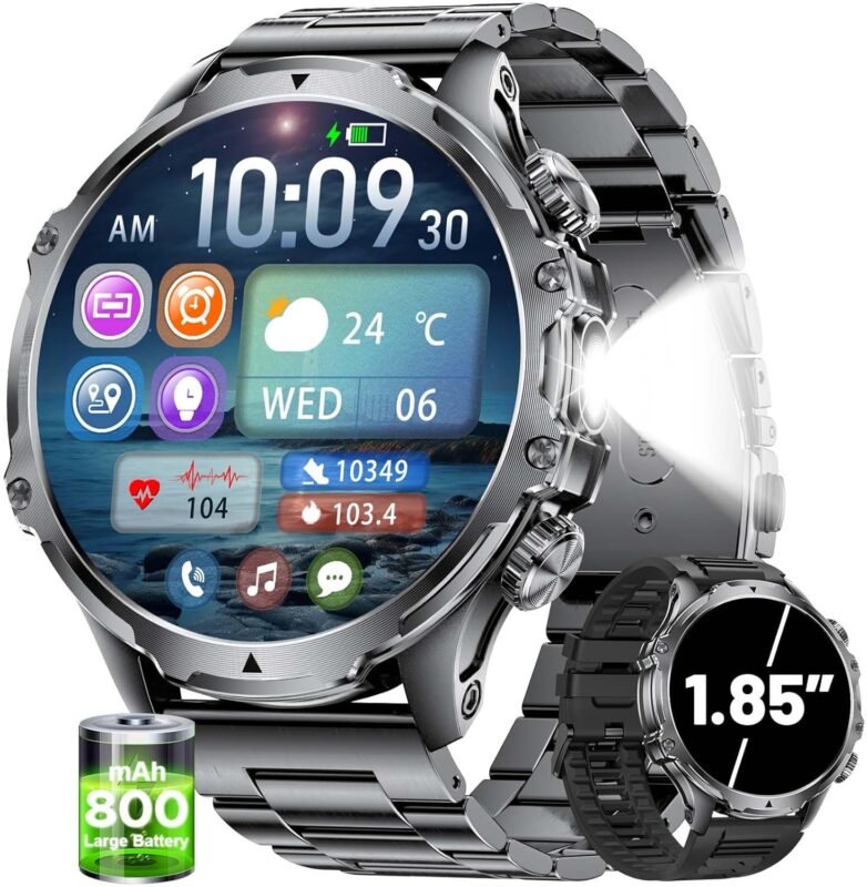 Militrary Smart Watch for Men,1.85″ HD/800mAh Battery Smart watches for Android/iOS (Bluetooth