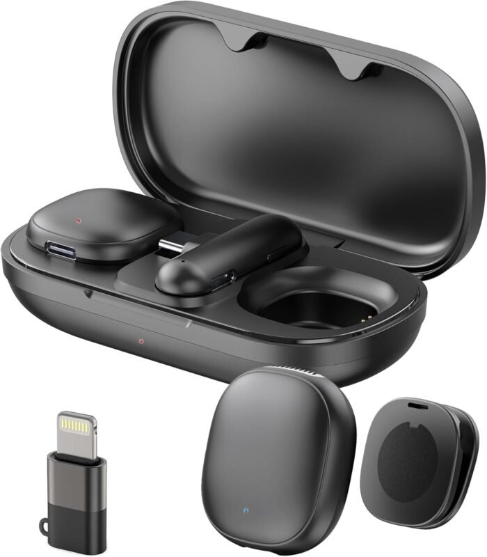 Phone Microphone AI Noise Filter – Mini Go 2 Wireless Lavalier Microphones for iPhone 17 Android with Charging Case Lapel Mic for Content Creators Vlogging Video Audio Recording 48kHz/24bit