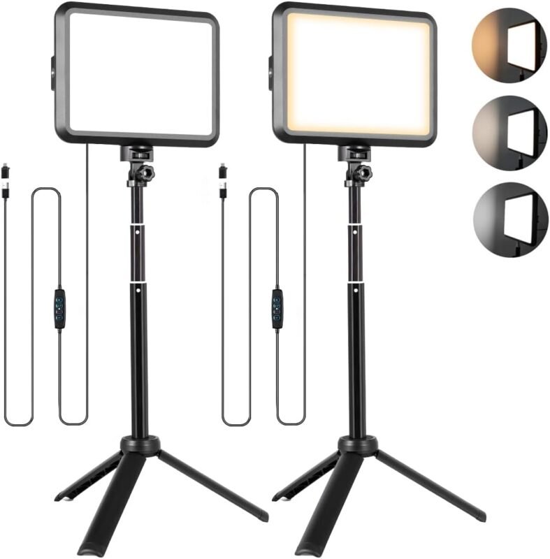 NiceVeedi LED Photography Lighting Kit, 2-Pack 8” Portable Video Light with Adjustable Tripod Stand, 2800K-6500K Dimmable Softlight Studio Light for Zoom, Game Streaming, YouTube