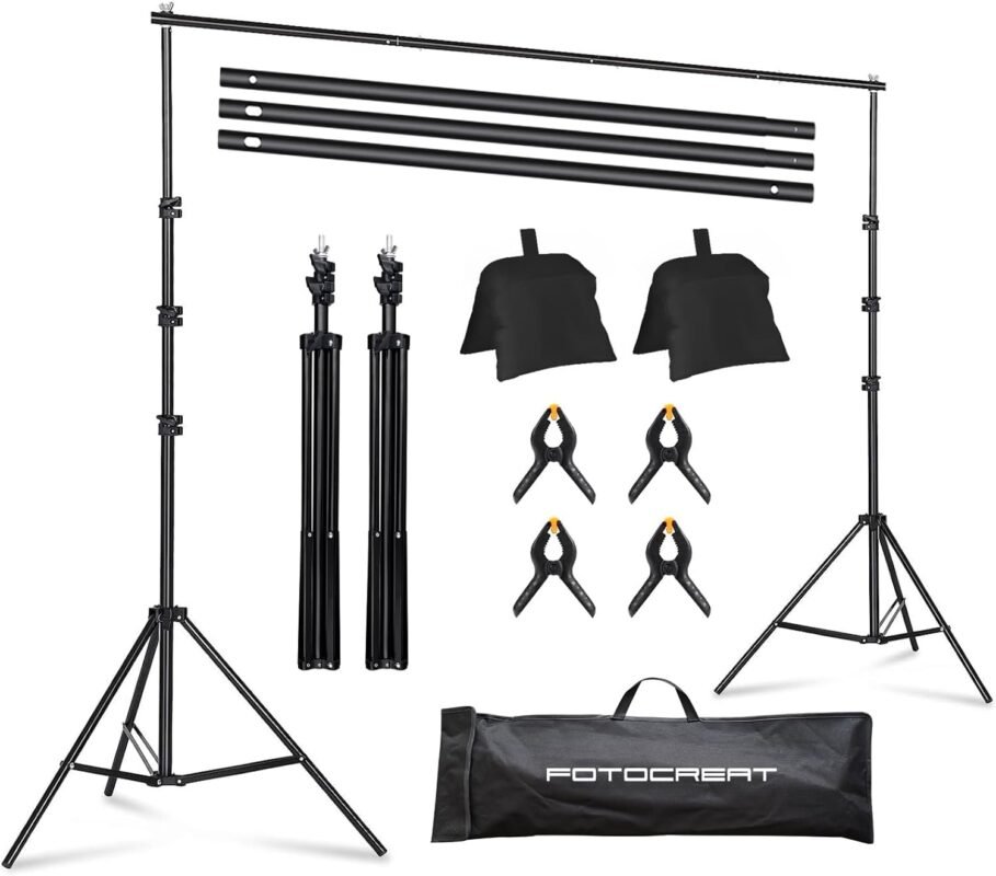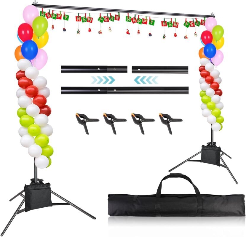 8.5 x 10ft Backdrop Stand, Adjustable Photo Backdrop Stand for Parties, Weddings Birthday Video Studio Photography, Backdrop Stand Kit with 4 Spring Clamps, 2 Sandbags, 1 Carrying Bag.