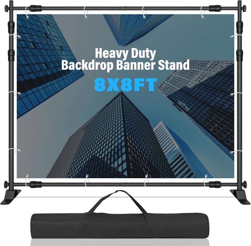 10×8 FT(WxH) Heavy Duty Backdrop Banner Stand with Adjustable Telescopic Tube,Step and Repeat Stand for Parties, Photo Booths, Exhibit Events and More Easy to Install(Carrying Bag Included)