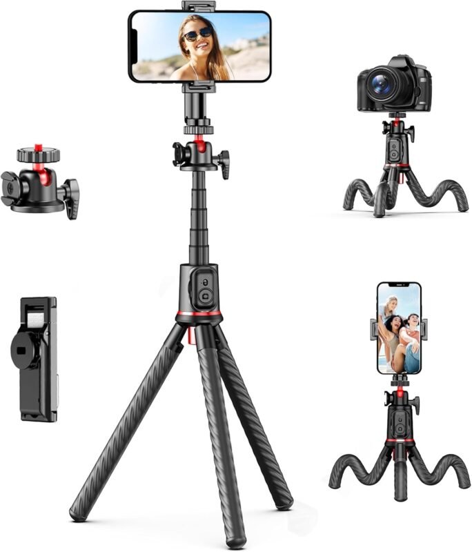 16 Feb إكسسوارات تصوير Fotopro Flexible Phone Tripod, Mini Camera Tripod with Wireless Remote Phone Holder, 360° Rotation Extendable Phone Tripod Stand for Video Recording Vlogging Live Streaming Posted by b.bhipksa 2026-02-16 0 Continue reading