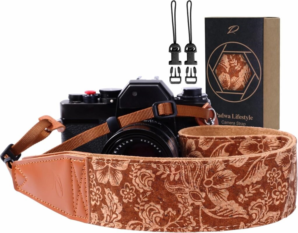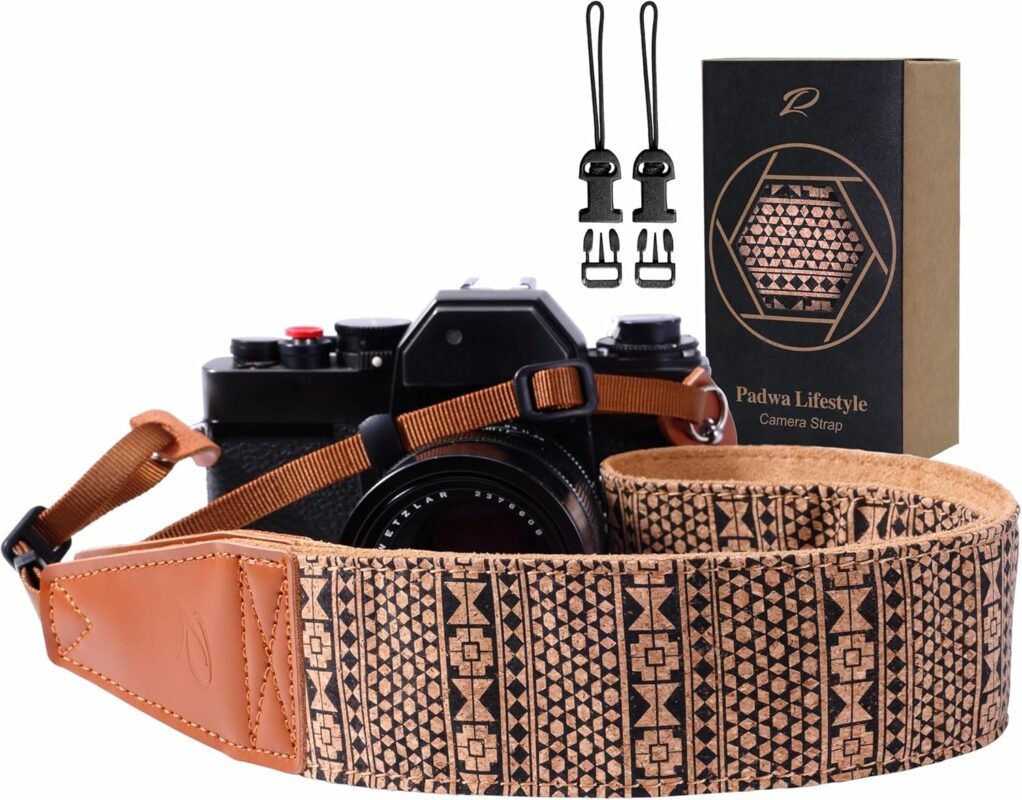 Padwa Lifestyle Cork Camera Strap – 2″ Top Layer Cowhide Head Camera Straps for Photographers,Natural Log Crackle Art Print Style,Soft Chamois Velvet Padded Strap Quick Release fits All Cameras