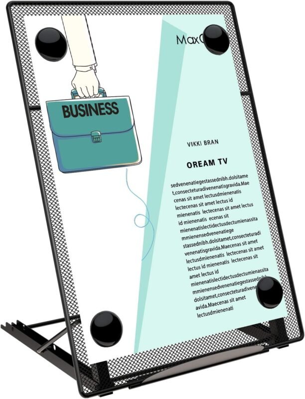 MaxGear Desktop Document Holder for Typing, Foldable Paper Holder Stand for Desk with 4 Magnetic Buckles, Metal Mesh Letter Copy Holder with Non-Slip Base, 6 Adjustable Viewing Angles, Black