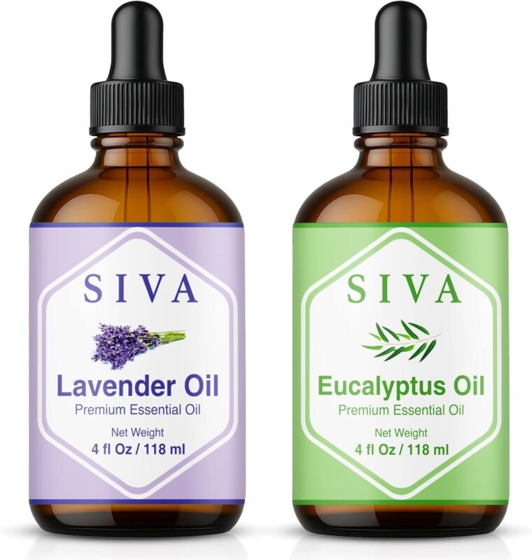 Siva Lavender & Eucalyptus Essential Oil 4oz Bundle Super Saver Combo – Premium Grade Bundle Set for Aromatherapy, Hair Care, Scalp Massage, Skin Care, Candles, Soaps and Diffuser