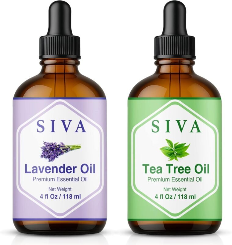 Siva Lavender and Tea Tree Essential Oil 4oz Bundle Super Saver Combo – Premium Grade Bundle Set for Aromatherapy, Hair Care, Scalp Massage, Skin Care, Candles, Soaps and Diffuser