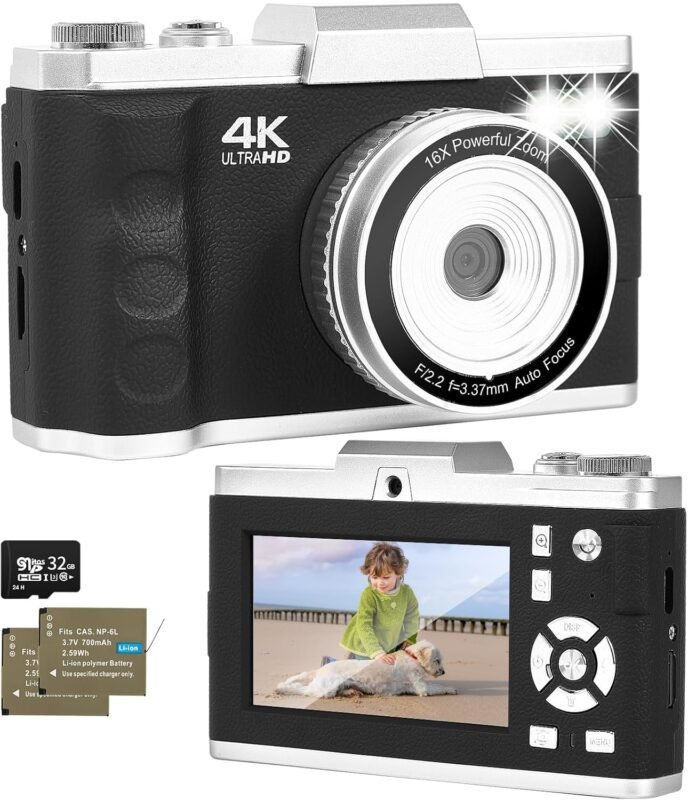 09 Feb كاميرات رقمية Digital Camera,Autofocus 4K Vlogging Camera for YouTube with SD Card,64MP Portable Compact Point and Shoot Digital Camera for Teens Adult Beginner with 16X Zoom,Anti-Shake,2 Batteries (Black) Posted by b.bhipksa 2026-02-09 0 Continue reading